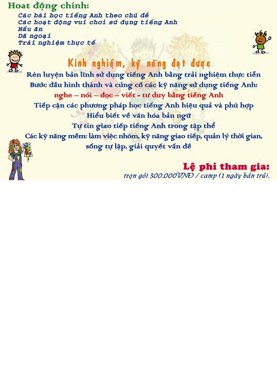 Camp tiếng Anh cho bé yêu ngày hè bổ ích!!!(dành cho bé 6 đến 11 tuổi)